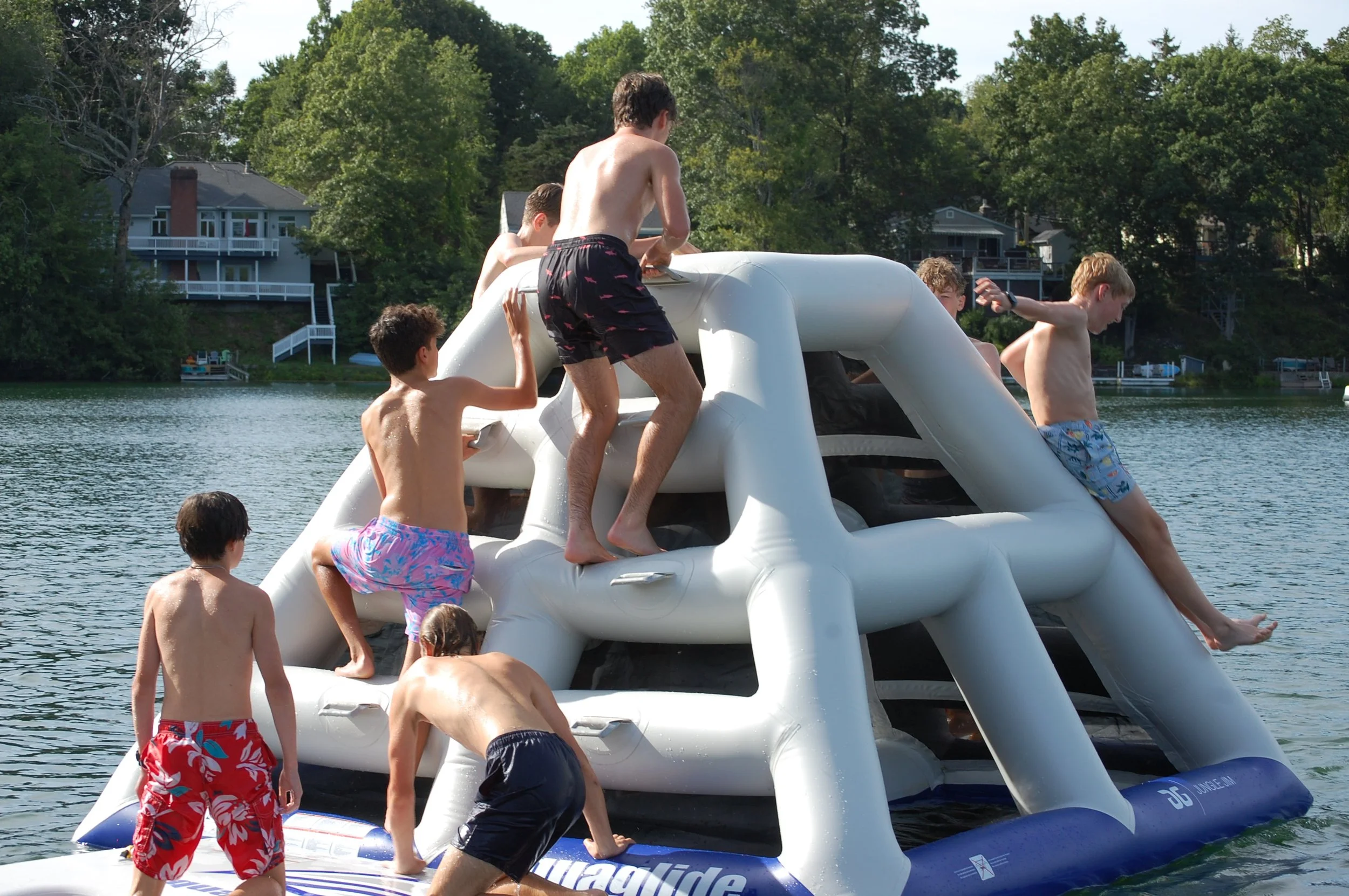 We have access to a lake front just steps away from the cabins. This waterfront is under careful watch of a trained lifeguard at all times. Available in this area are: diving boards, waiting area, blow-up trampoline, and basketball. This access allows the runners to relax after their afternoon run, do some water training, or just have fun.